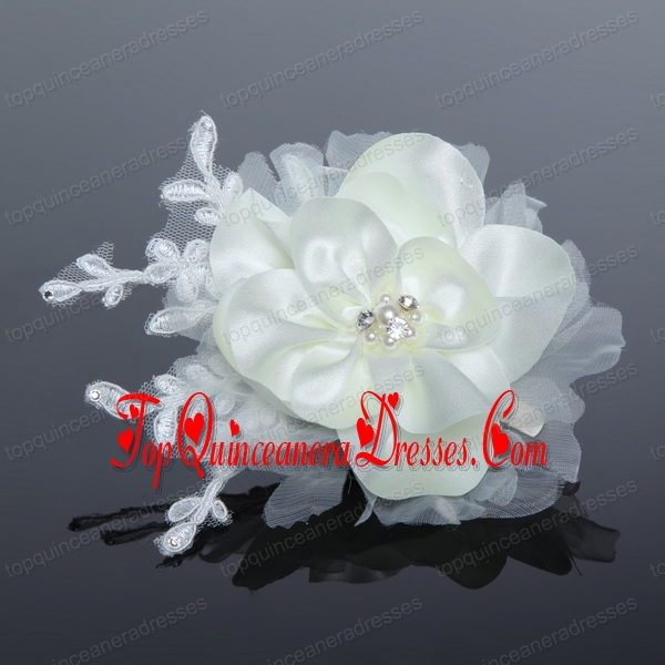 Tulle and Lace Wedding Fascinators with Imitation Pearls