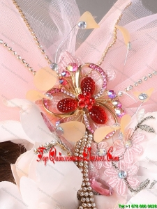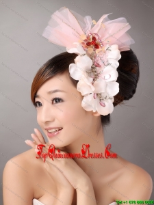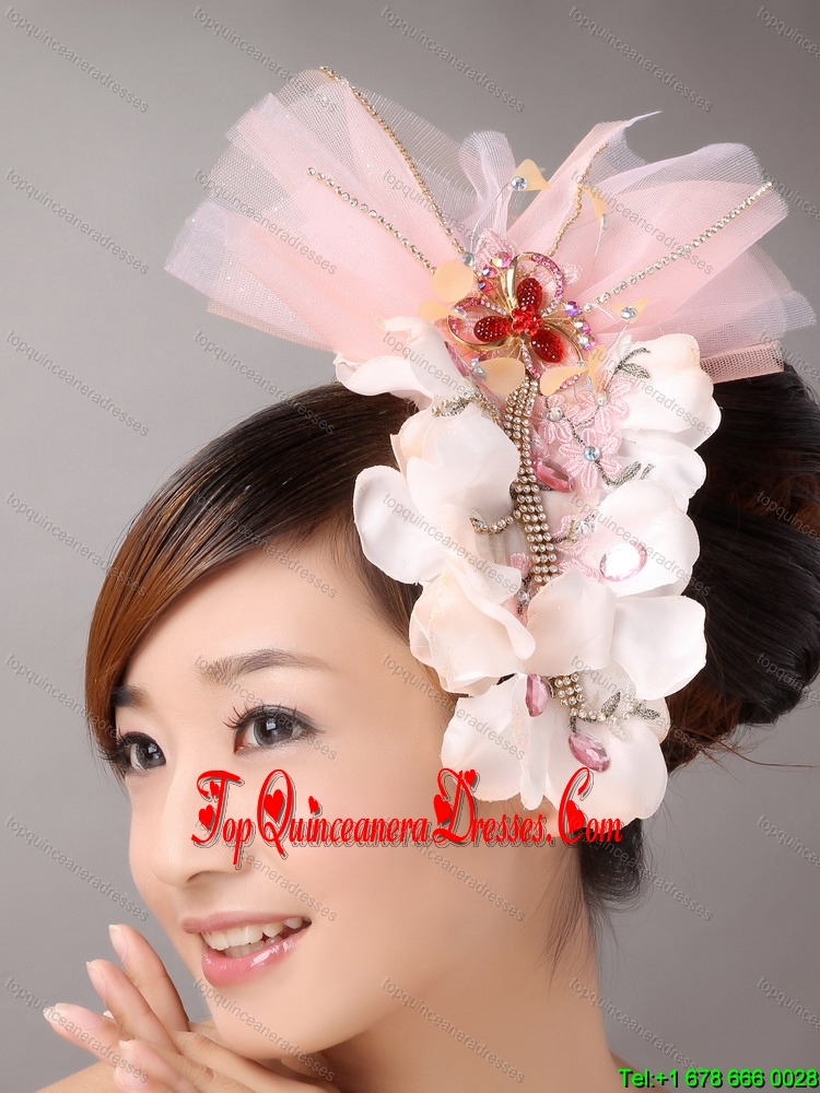 Tulle and Organza Beaded and Flowers Decorate Baby Pink Headpices