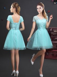 Tulle One Shoulder Sleeveless Lace Up Lace and Ruching Quinceanera Dama Dress in Lilac