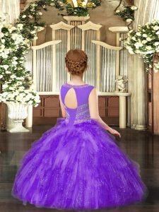 Tulle Scoop Sleeveless Lace Up Beading and Ruffles Evening Gowns in Gold