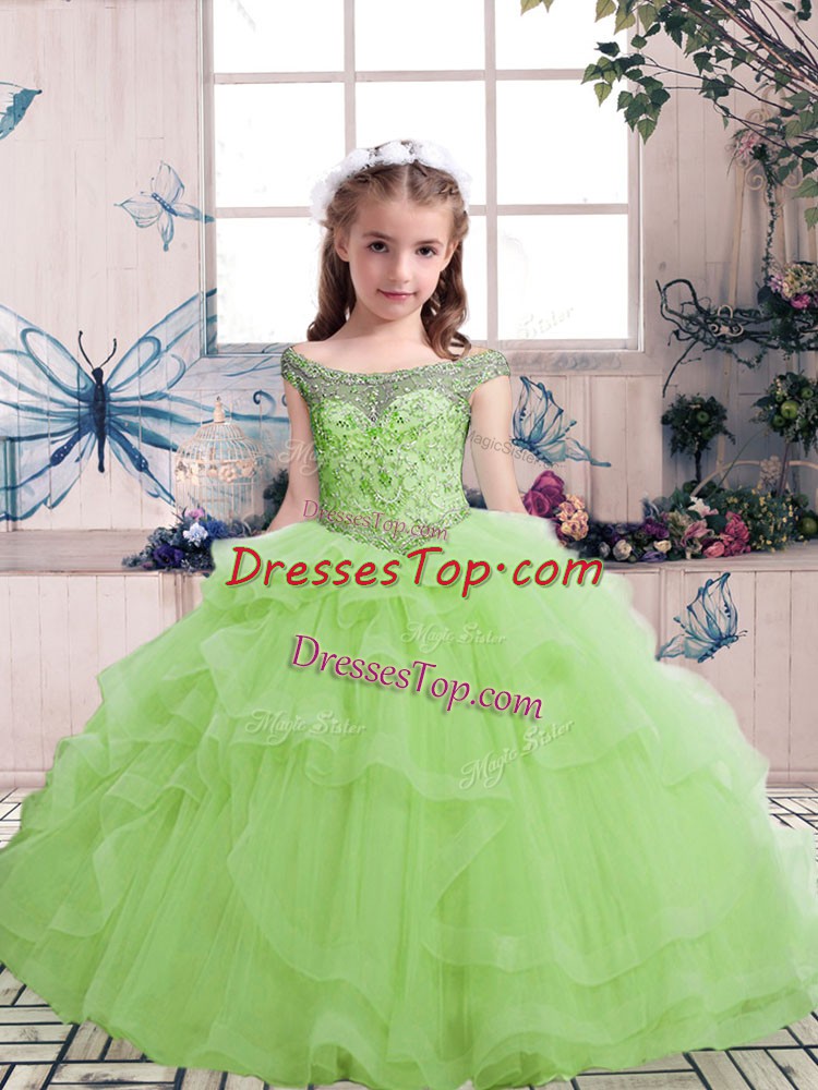 Tulle Scoop Sleeveless Lace Up Beading and Ruffles Little Girl Pageant Gowns in Yellow Green