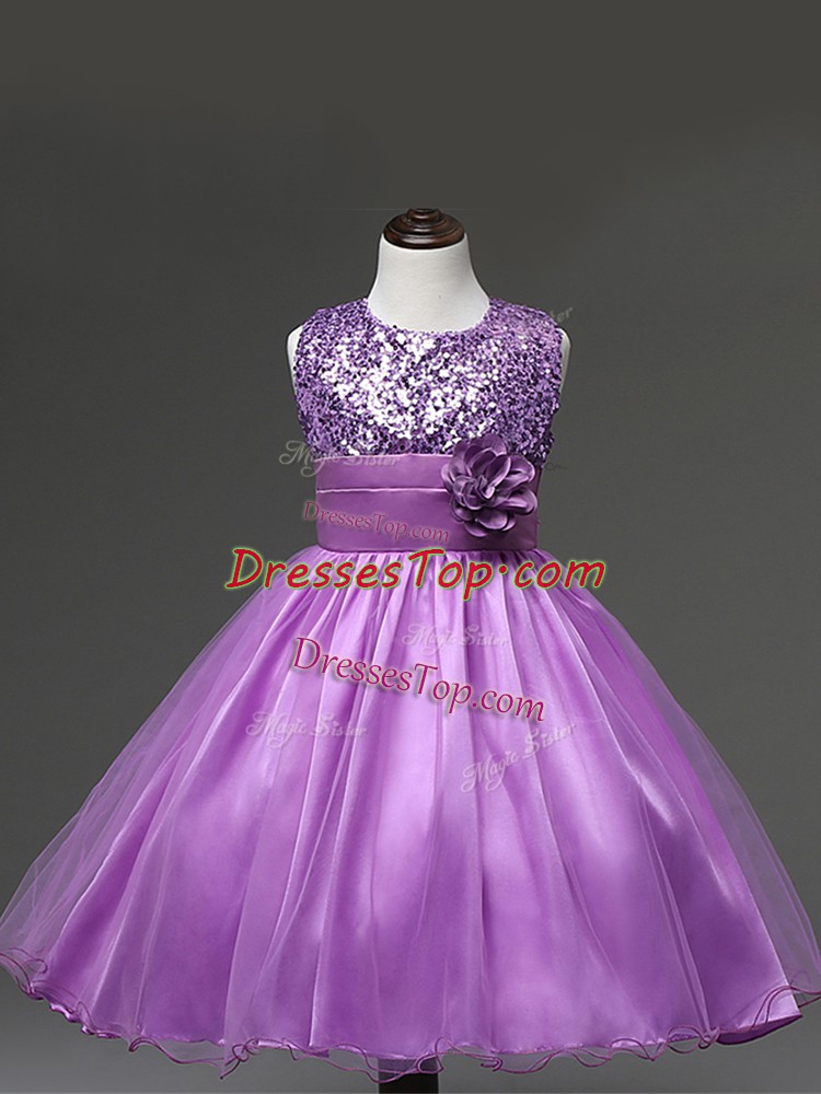 Tulle Scoop Sleeveless Zipper Sequins and Hand Made Flower Pageant Dress Wholesale in Lilac