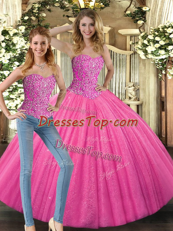 Tulle Sleeveless Floor Length 15th Birthday Dress and Beading