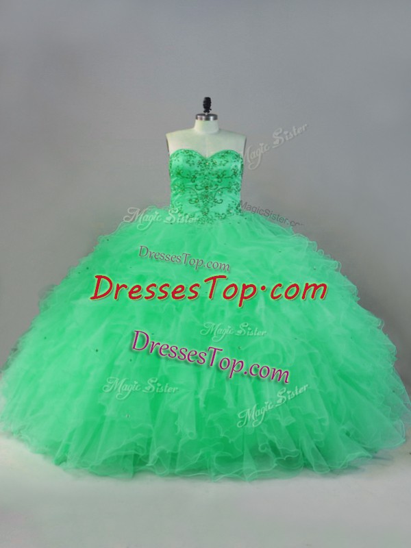 Tulle Sleeveless Floor Length Ball Gown Prom Dress and Beading