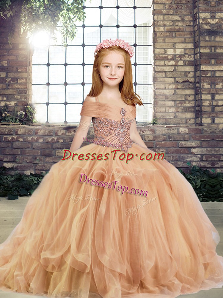 Tulle Sleeveless Floor Length Child Pageant Dress and Beading