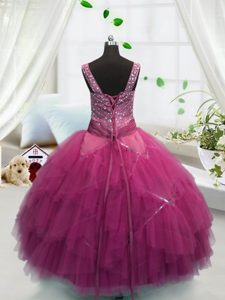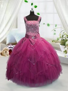 Tulle Sleeveless Floor Length Girls Pageant Dresses and Beading and Ruffles