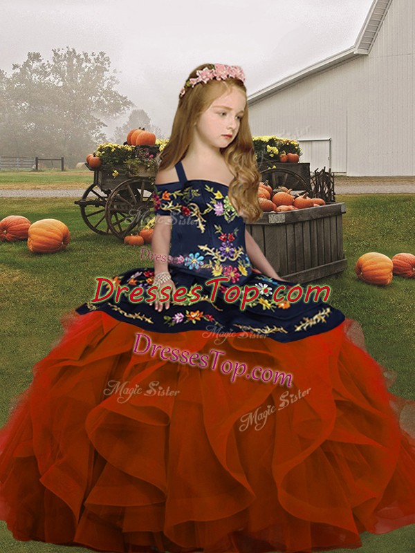 Tulle Sleeveless Floor Length Girls Pageant Dresses and Embroidery and Ruffles