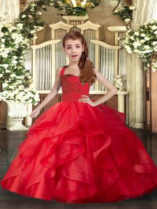 Tulle Sleeveless Floor Length Kids Pageant Dress and Ruffles and Ruching