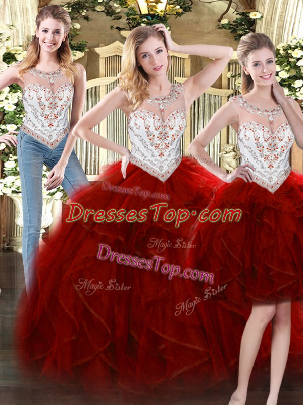 Tulle Sleeveless Floor Length Quince Ball Gowns and Beading and Ruffles