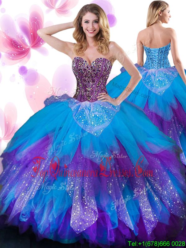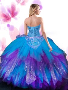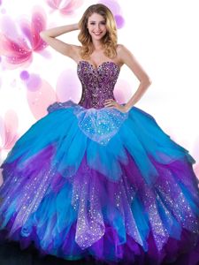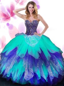 Tulle Sleeveless Floor Length Quinceanera Dresses and Beading and Ruffled Layers