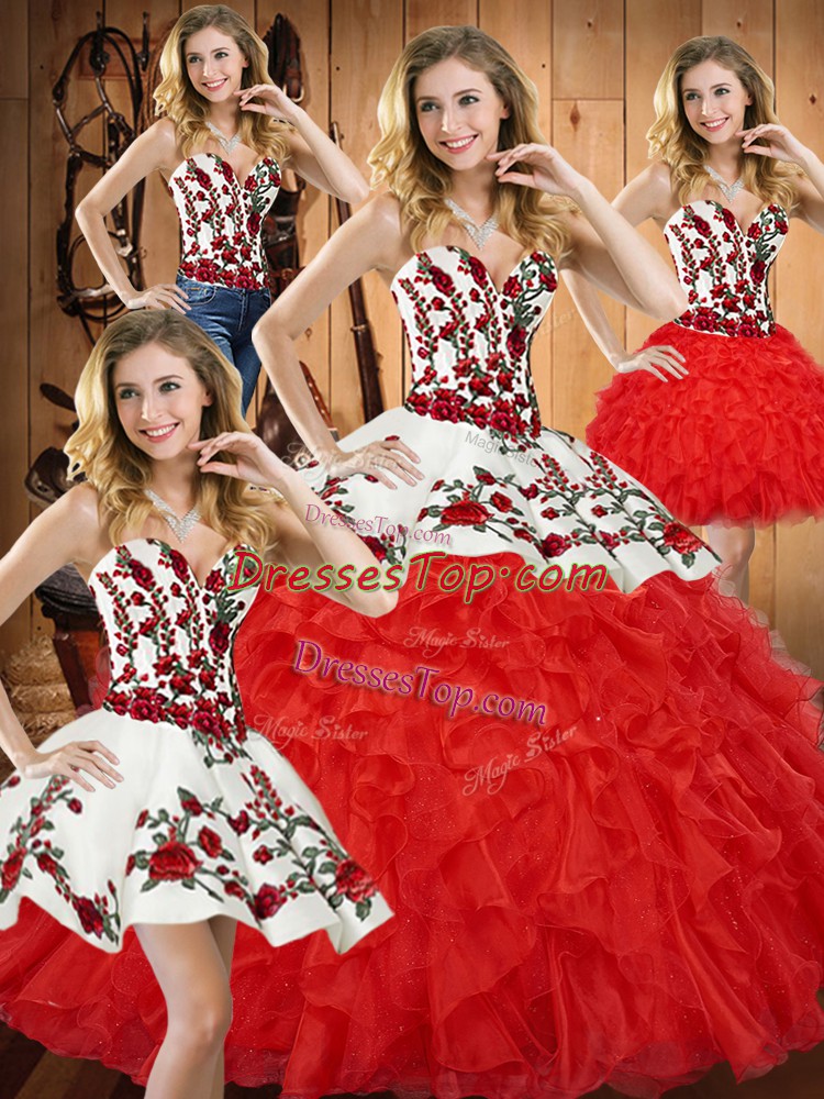 Tulle Sleeveless Floor Length Quinceanera Dresses and Embroidery and Ruffles