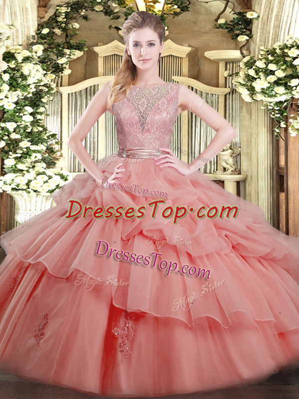 Tulle Sleeveless Floor Length Quinceanera Gown and Beading and Ruffled Layers