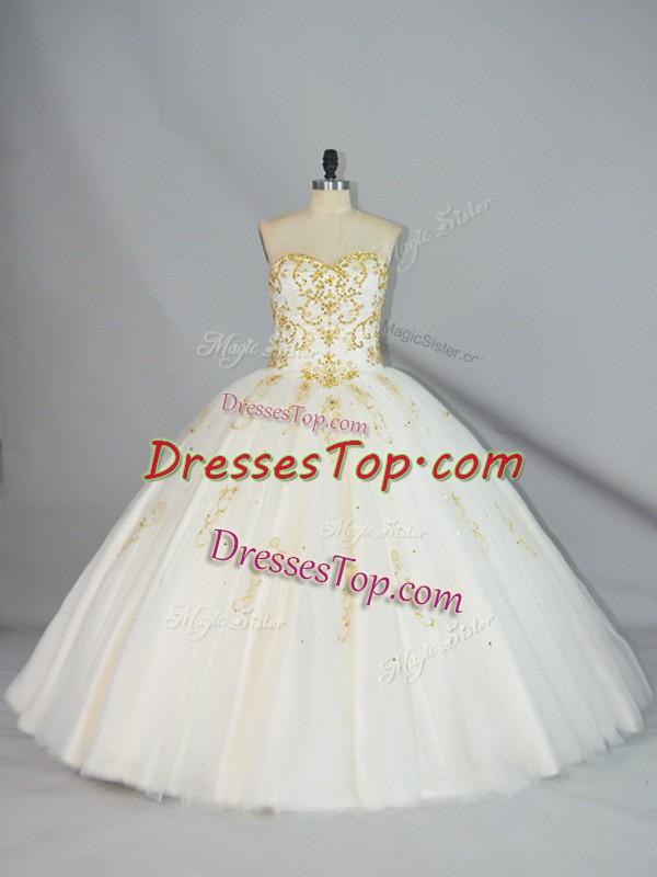 Tulle Sleeveless Floor Length Quinceanera Gown and Beading