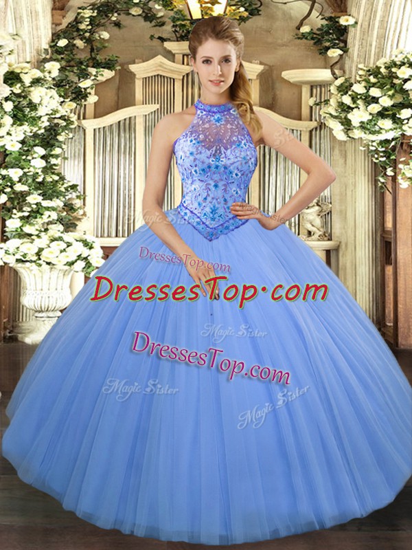 Tulle Sleeveless Floor Length Sweet 16 Dress and Beading and Embroidery