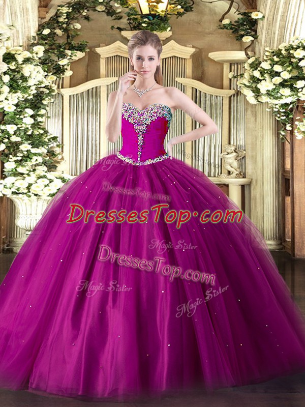 Tulle Sleeveless Floor Length Sweet 16 Dress and Beading