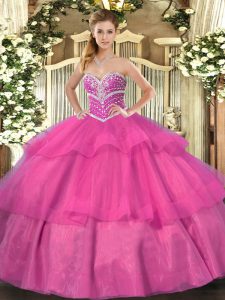 Tulle Sleeveless Floor Length Sweet 16 Quinceanera Dress and Beading and Ruffled Layers