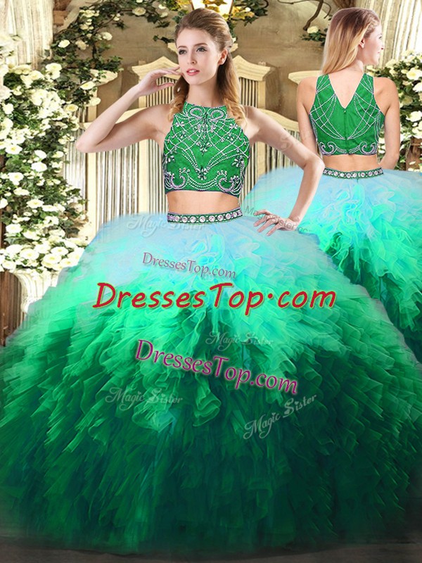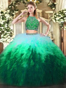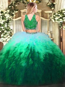 Tulle Sleeveless Floor Length Sweet 16 Quinceanera Dress and Beading and Ruffles