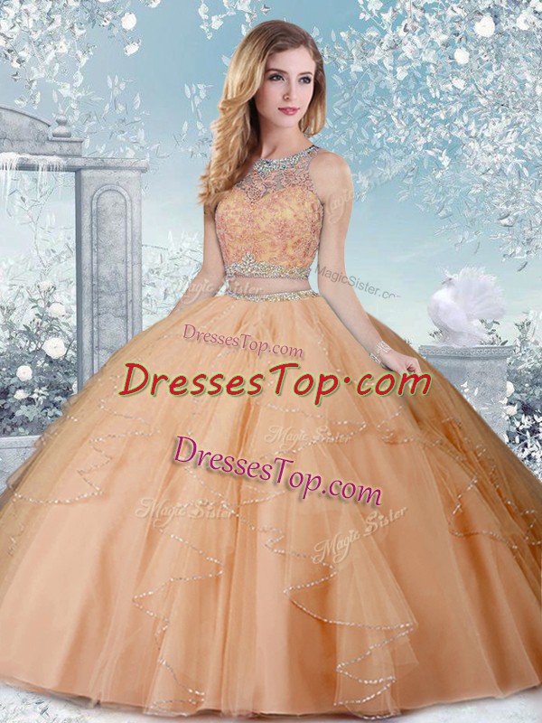 Tulle Sleeveless Floor Length Vestidos de Quinceanera and Beading