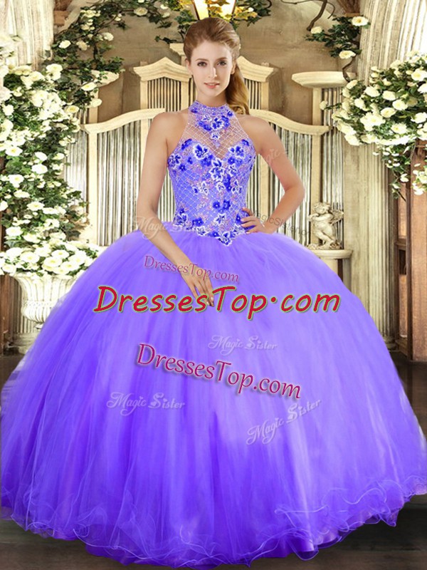 Tulle Sleeveless Floor Length Vestidos de Quinceanera and Embroidery