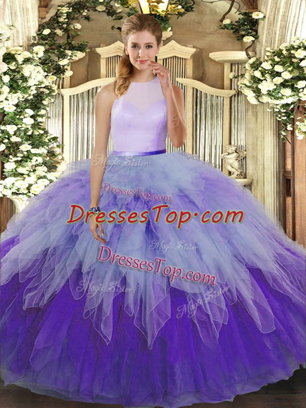 Tulle Sleeveless Floor Length Vestidos de Quinceanera and Ruffles