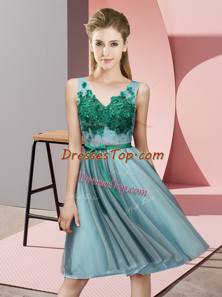 Tulle Sleeveless Knee Length Quinceanera Dama Dress and Appliques