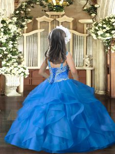 Tulle Straps Sleeveless Lace Up Beading and Ruffles Little Girls Pageant Dress in Aqua Blue