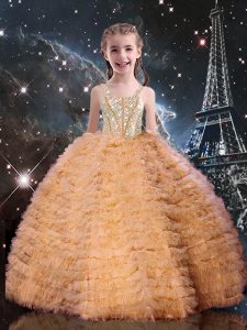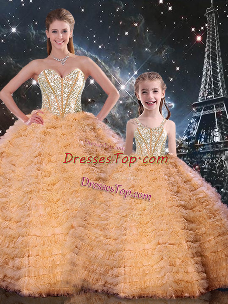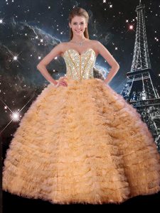 Tulle Sweetheart Sleeveless Lace Up Beading and Ruffles Sweet 16 Dress in Orange