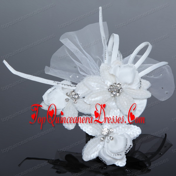 Tulle White Hair Flower with Rhinestone for Wedding