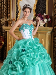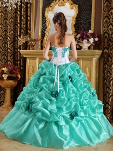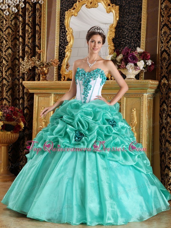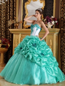 Turquoise 2013 Quinceanera Dress Sweetheart Hand Made Flowers