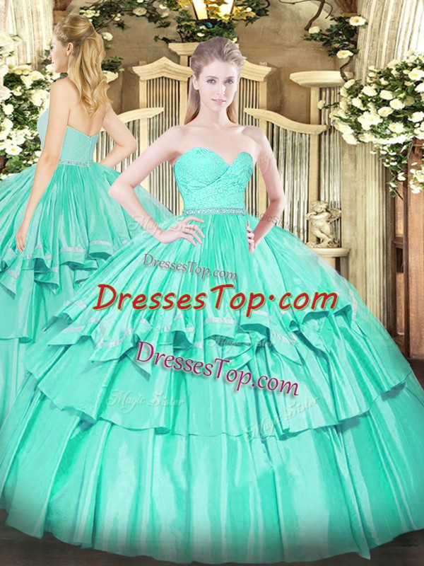 Turquoise Ball Gowns Beading and Lace and Ruffled Layers 15 Quinceanera Dress Zipper Organza Sleeveless Floor Length