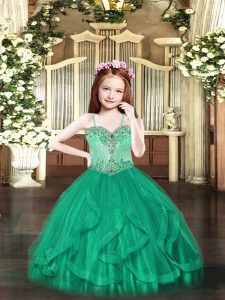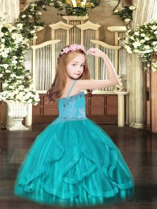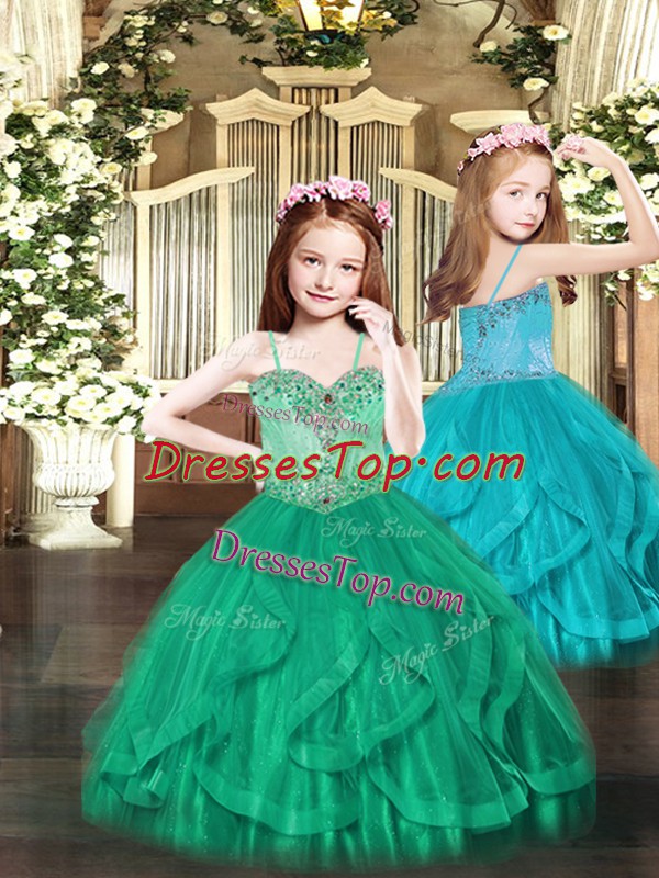 Turquoise Ball Gowns Beading and Ruffles Little Girls Pageant Dress Lace Up Tulle Sleeveless Floor Length
