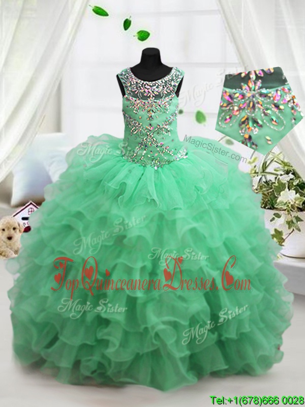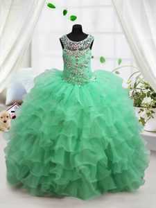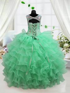Turquoise Lace Up Scoop Beading and Ruffled Layers Glitz Pageant Dress Organza Sleeveless