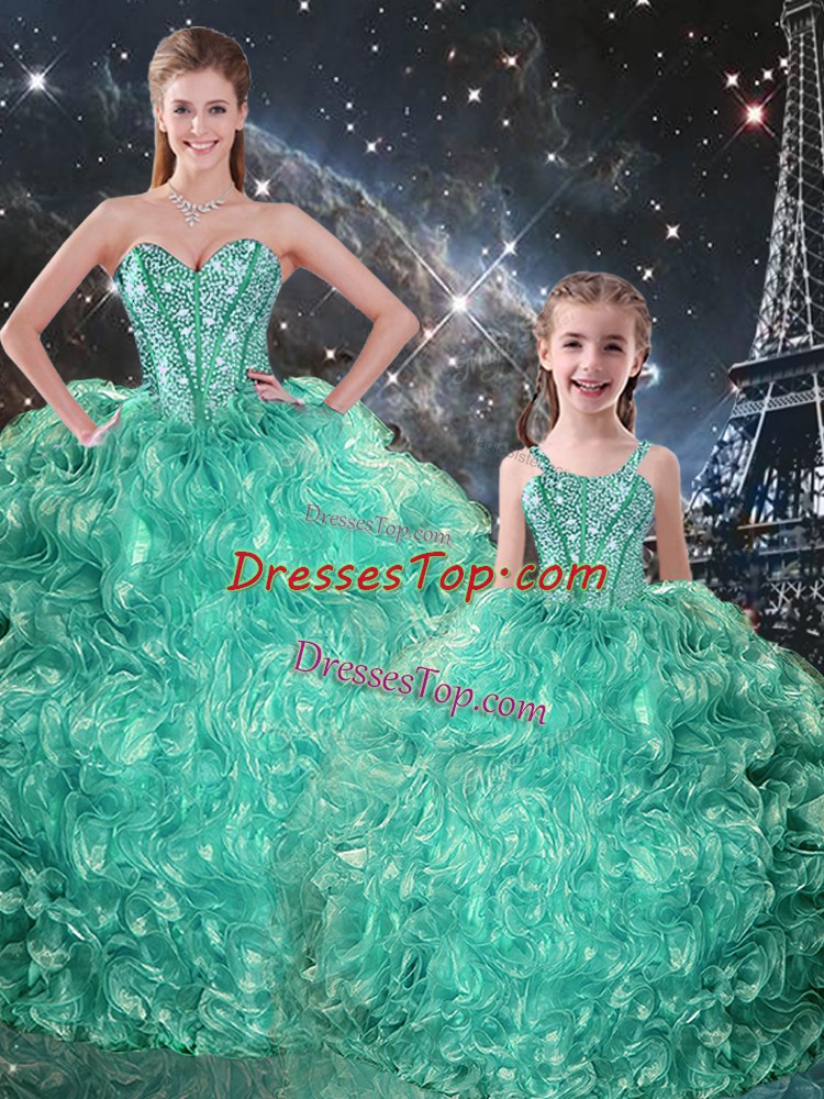 Turquoise Organza Lace Up Sweetheart Sleeveless Floor Length Sweet 16 Quinceanera Dress Beading and Ruffles