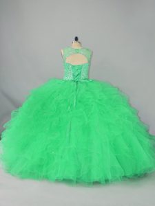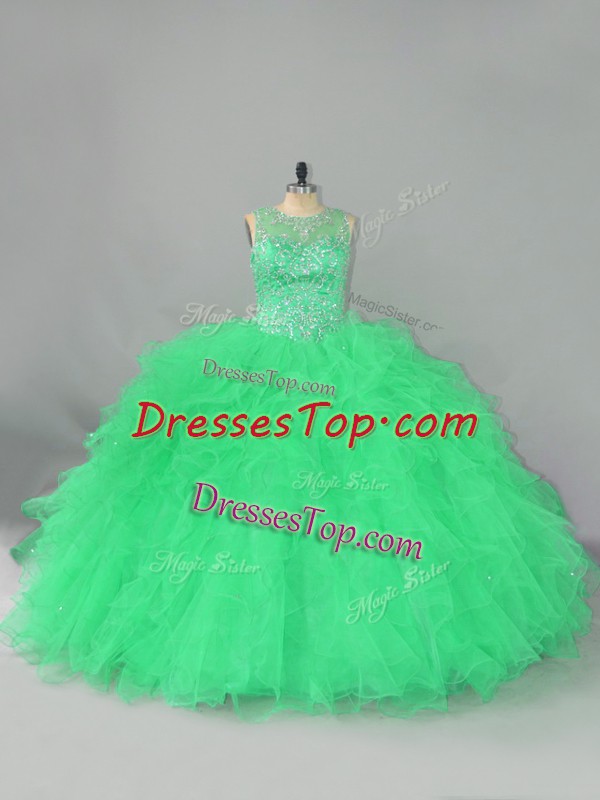 Turquoise Scoop Neckline Beading and Ruffles Ball Gown Prom Dress Sleeveless Lace Up