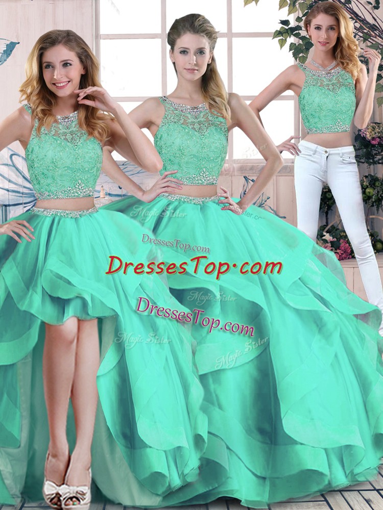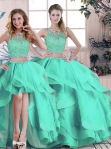 Turquoise Scoop Neckline Beading and Ruffles Quinceanera Dresses Sleeveless Zipper