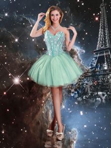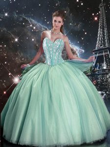 Turquoise Sleeveless Beading Floor Length Ball Gown Prom Dress