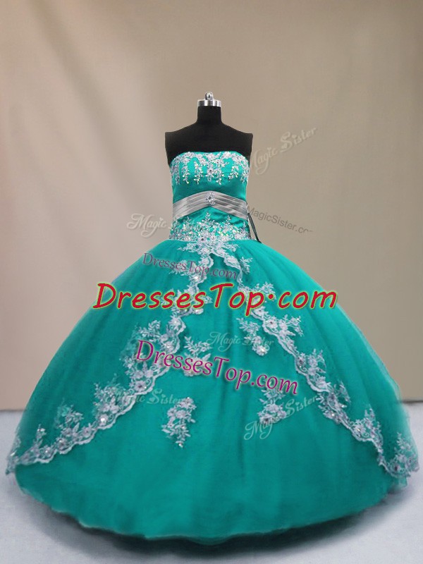 Turquoise Strapless Lace Up Appliques Sweet 16 Dresses Sleeveless