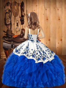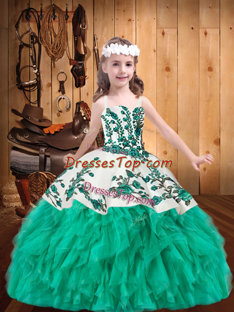 Turquoise Straps Neckline Embroidery and Ruffles Pageant Dress Toddler Sleeveless Lace Up