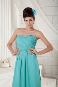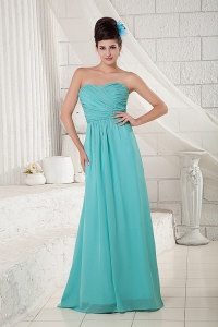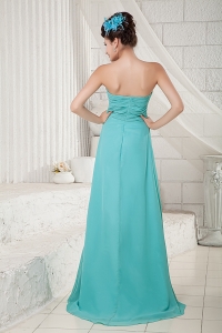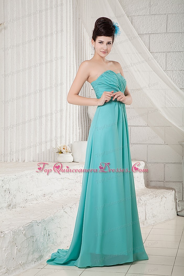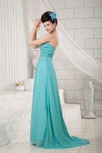 Turquoise Sweetheart Brush Train Chiffon Ruched Dama dresses