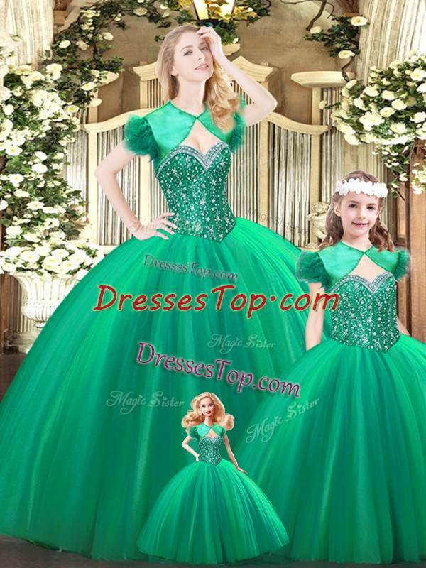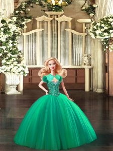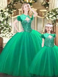 Turquoise Tulle Lace Up Sweetheart Sleeveless Floor Length Quince Ball Gowns Beading