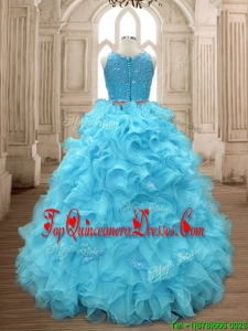 Two Piece Scoop Beaded and Ruffles Quinceanera Dress in Baby Blue