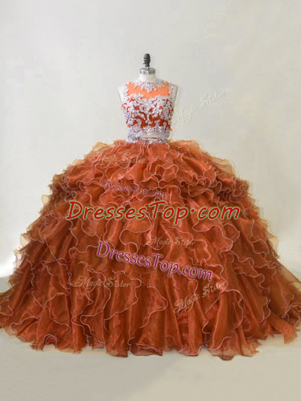 Two Pieces Sleeveless Brown Quince Ball Gowns Brush Train Zipper