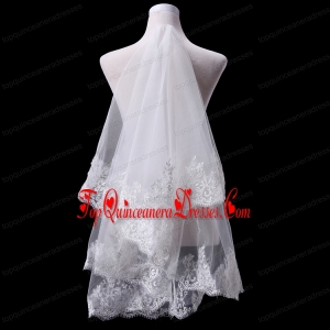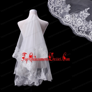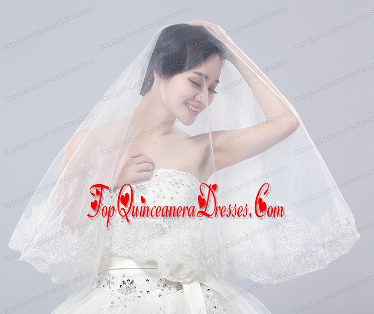 Two-Tier Lace Edge Wedding Veils with Angle Cut