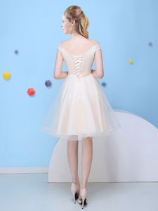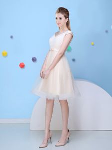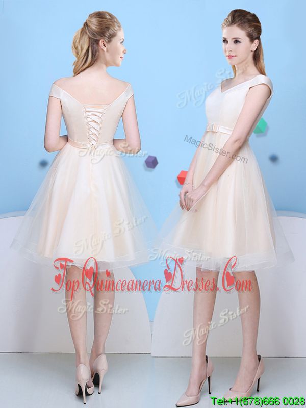 Unique Champagne Cap Sleeves Bowknot Knee Length Quinceanera Dama Dress