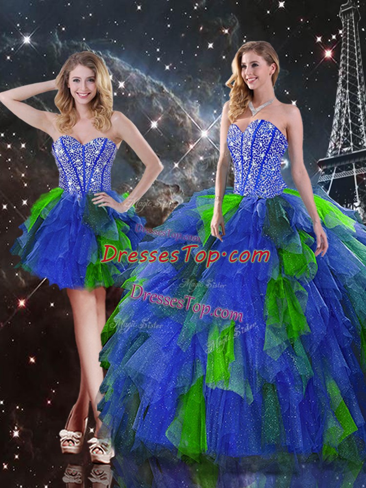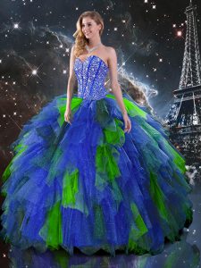 Unique Floor Length Ball Gowns Sleeveless Multi-color Sweet 16 Dress Lace Up