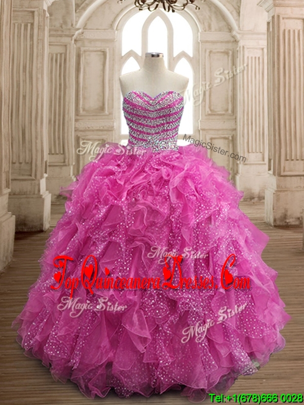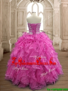 Unique Fuchsia Big Puffy Quinceanera Dress with Beading and Ruffles