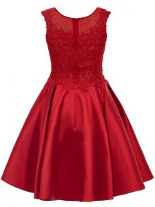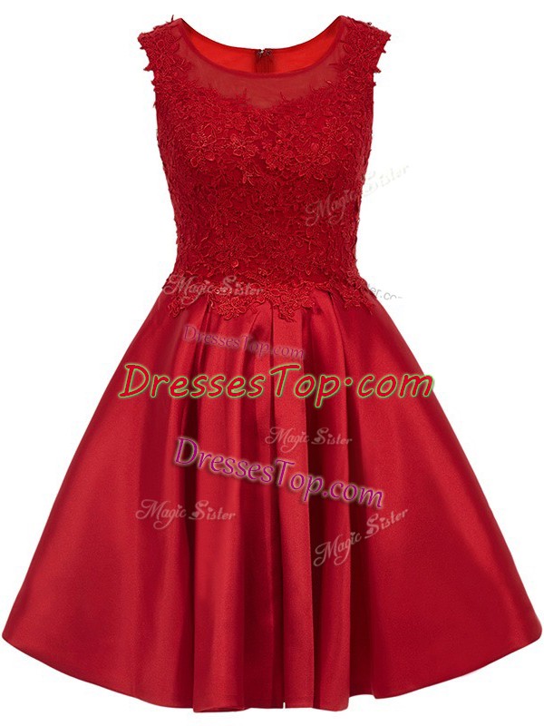 Unique Lace Quinceanera Court of Honor Dress Wine Red Zipper Sleeveless Mini Length