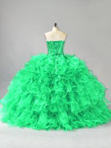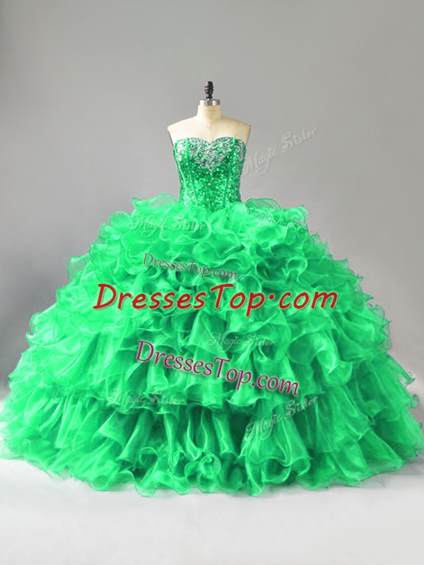 Unique Lace Up Sweet 16 Dresses Green for Sweet 16 and Quinceanera with Beading and Ruffles