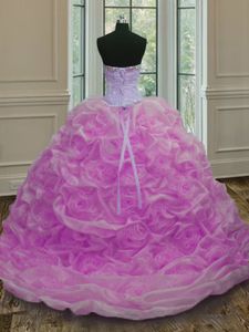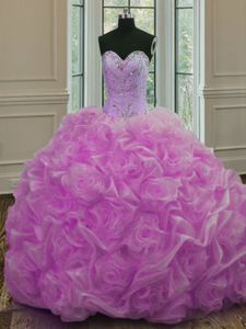 Unique Lilac Ball Gowns Beading and Pick Ups Sweet 16 Quinceanera Dress Lace Up Organza Sleeveless