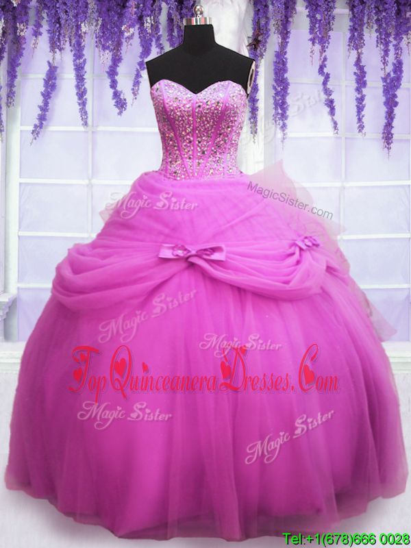Unique Lilac Lace Up Sweetheart Beading and Sequins and Bowknot Quinceanera Gown Tulle Sleeveless